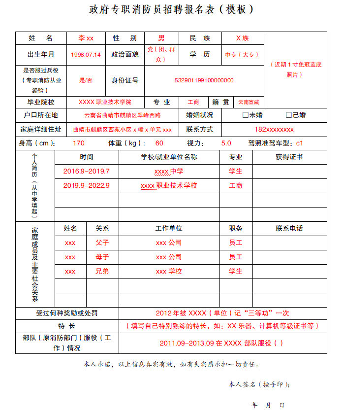 1、政府專職消防員招聘報(bào)名表(模板)