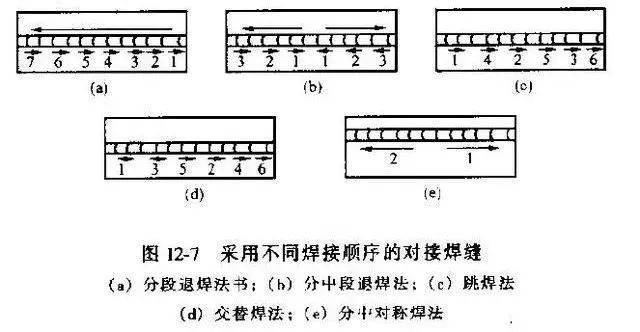 跳焊、分段退焊、分中分段退焊、交替焊和分中對稱焊