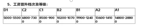 入職前1—6個(gè)月執(zhí)行5000-6000元;6—12個(gè)月可晉升為6800-7300元;每半年考核晉升一次,月薪資漲幅600-1200;工作滿(mǎn)一年工資8000元左右;工作滿(mǎn)2年,月薪資可達(dá)9000-12000,工作滿(mǎn)兩年半,月薪資可達(dá)12000-14000。