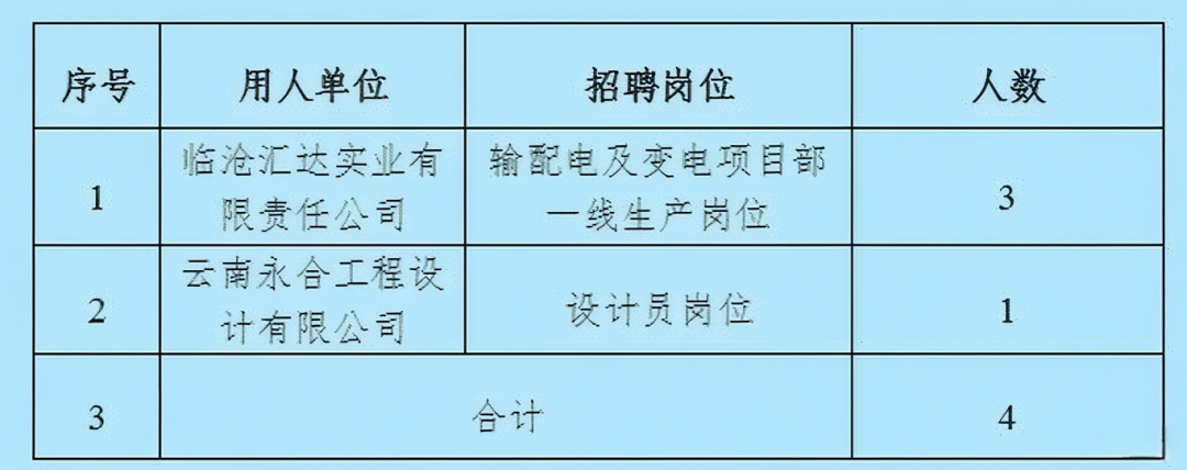 臨滄匯達實業(yè)有限責任公司(以下簡稱“臨滄匯達公司”)為滿足臨滄匯達公司本部及各單位用人需求,決定開展2025年校園招聘工作,現(xiàn)將招聘事項公告如下: