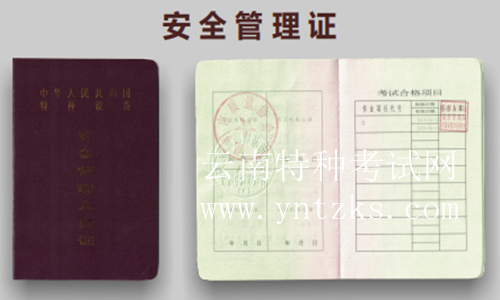 鍋爐、壓力容器、電梯、起重機械、客運索道、場(廠)內(nèi)專用機動車輛的管理人員統(tǒng) 稱為特種設備安全管理人員,代號:A。證書全國通用,國網(wǎng)查詢。4年一復審,由昆明 市市場監(jiān)督管理局頒發(fā)。